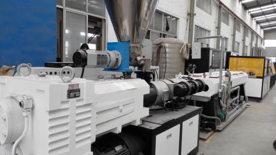 PVC double pipe extrusion line is developed with the West Europe advanced technology by our company, the main machine is SJSZ55/110 or SJSZ65/132 conical twin screw extruder is equipped with double-tube single-control stainless steel spraying calibration tank, it avoids waste condition when one tube is adjusted and the other one is affected, The auto single-control double drawing machine and cutting machine are combined with the front double calibration technology to make operation more flexible let you enjoy economic benefit which is brought by separate-control double-tube extruding.