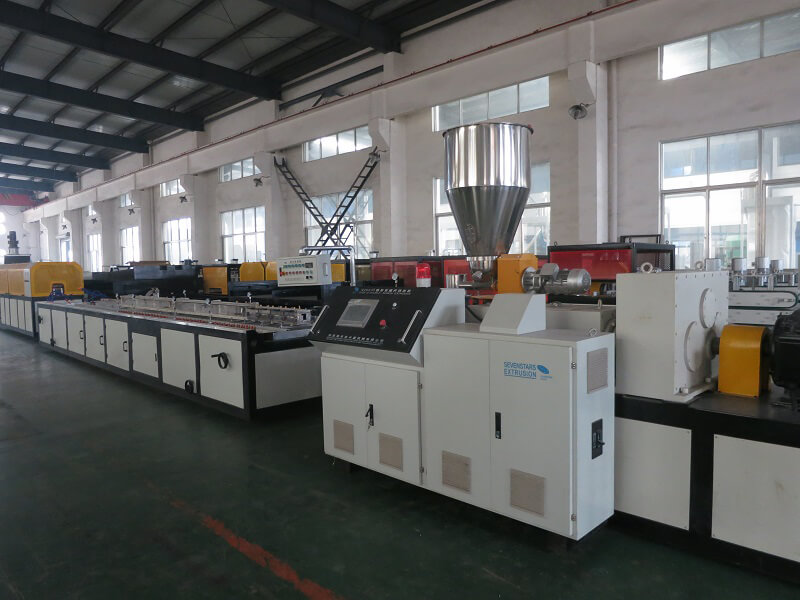 This line is mainly used for production of PVC WPC profile products, which used in the indoor decoration, including kitchen cabinet, windows profile, doors profile, etc.